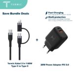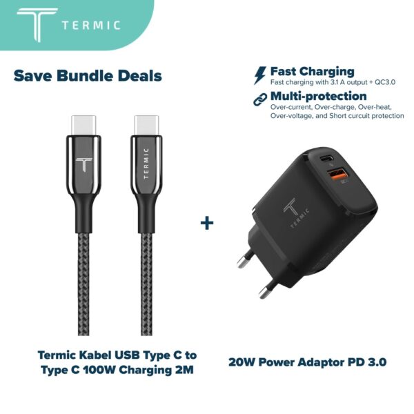 [Bundle Deal] Termic Kabel USB Type C to Type C 100W Charging 2M + 20W Power Adaptor PD 3.0